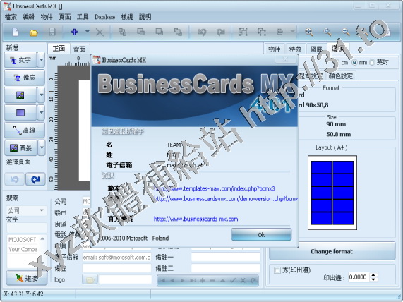• Mojosoft BusinessCards MX v4.02 繁體中文正式版(商業名片製作軟體)