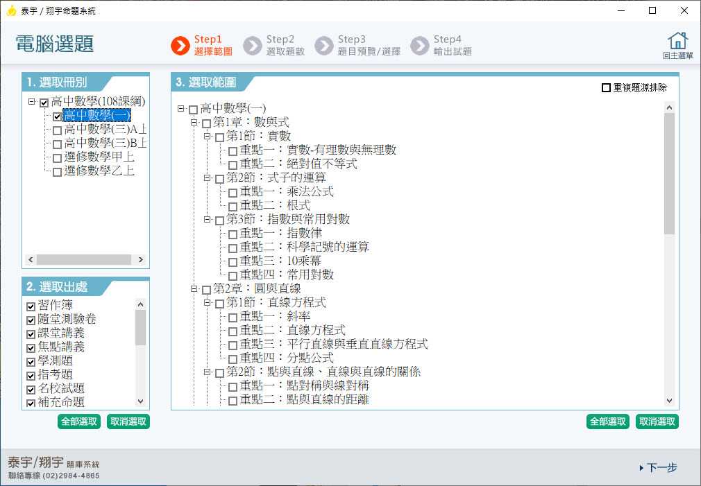 112學年上學期 高中命題光碟 泰宇版 數學科(一、三A、三B、選修甲上、選修乙上)(108課綱) 題庫光碟
