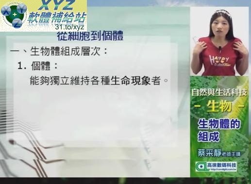 • 第一志願【無敵】國一上 生物細說(100課綱)(第一冊) 專業生物名師 蔡采靜 老師 01-18集(全) 繁體中文教學合輯版(可在家用DVD機撥放)(2DVD5版)(內含 PDF電子書課本+講義)(翰林版、南一版、康軒版 均適用)