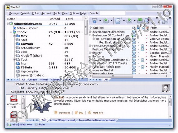 The Bat!是一個強大易用的E-mail客戶程式,支援多用戶環境,不受限制