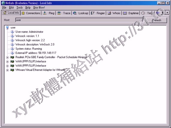 • Tsarfin NetInfo v6.2.715 英文正式版(獲得以IP相接的各種網路資訊軟體)