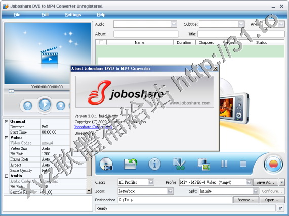 • Joboshare DVD to MP4 Converter v3.0.3.0215 英文正式版(DVD視頻轉換軟體)