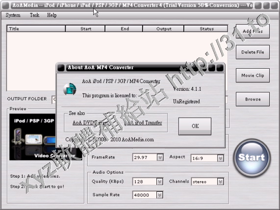 AoA iPod PSP 3GP MP4 Converter v4.1.1英文正式版(轉換你的視頻到便攜設備上以供播放軟體)